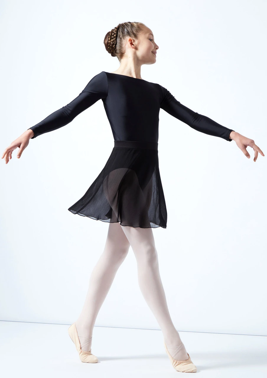 Switch up your look for class with this flowing lyrical-style pull on skirt. We’d wear this skirt over a leotard or a matching crop and briefs co-ord!
